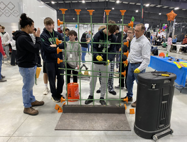 Fuera de la entrada del evento, MPW exhibió un camión grúa con la pancarta del evento para que todos la vieran. La presencia del camión grúa en el evento presentó una muestra de la innovación de la industria de la maquinaria pesada, ya que el camión contaba con una pluma articulada que nuestro equipo utiliza a diario para entregar y recuperar los encofrados de los paneles. MPW tomó la esencia misma de nuestro negocio y la puso en exhibición para desafiar a los estudiantes a imaginar las oportunidades que pueden ofrecer los oficios especializados.